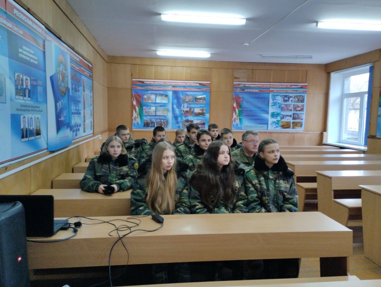 Перед учащимися выступил председатель Александр Иванович Коньшин, который рассказал ребятам об историческом пути «Добровольного общества содействия армии, авиации и флоту Республики Беларусь», о тех задачах, которые решает Общество на современном этапе. Ученикам показали видеоролики о ДОСААФ, ознакомили с экспозицией музея, который создан на базе организации, с учебными классами, лабораторией практических занятий, учебными автомобилями, на которых проходят обучение курсанты.