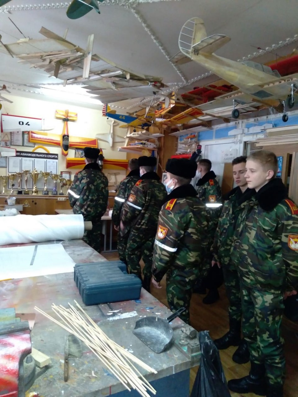 Гостям показали музей Могилевский объединенной организационной структуры ДОСААФ. Огромный интерес у кадетов вызвала секция по ракетомодельному и авиамодельному спорту.