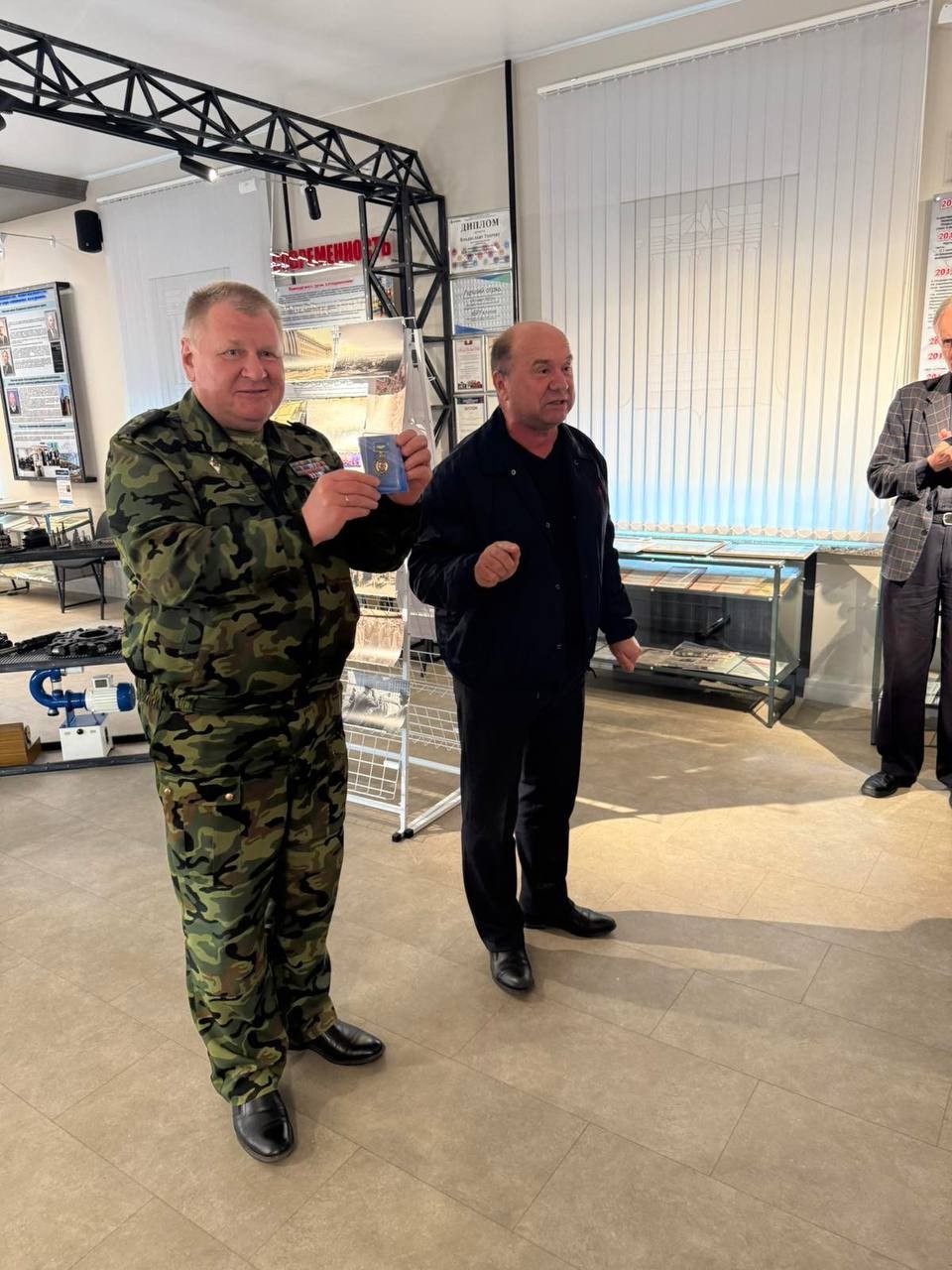 В завершение Игорь Евгеньевич и Александр Иванович поблагодарили коллектив БРУ за сотрудничество в привлечении молодёжи к военно-прикладным и служебно-прикладным видам спорта и вручил клубу памятный знак «95 лет ДОСААФ Республики Беларусь».