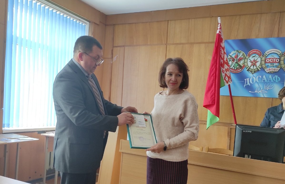 Перед работниками организации с докладом выступил председатель Могилевской объединенной организационной структуры ДОСААФ Коньшин Александр Иванович. Александр Иванович поблагодарил коллектив оборонного общества за слаженную работу, вручил нагрудные знаки «95 лет ДОСААФ Республики Беларусь». Так же работники Могилевской объединенной организационной структуры ДОСААФ были отмечены Грамотами центрального и областного советов ДОСААФ