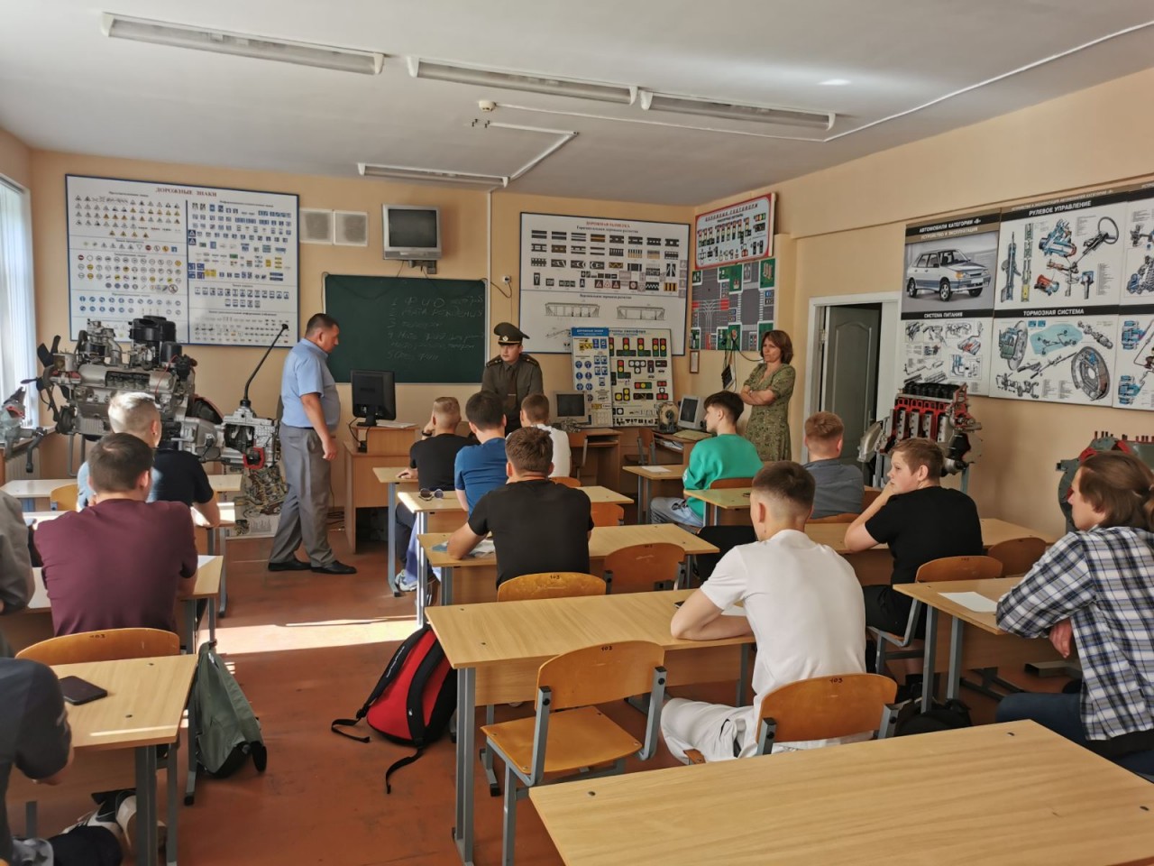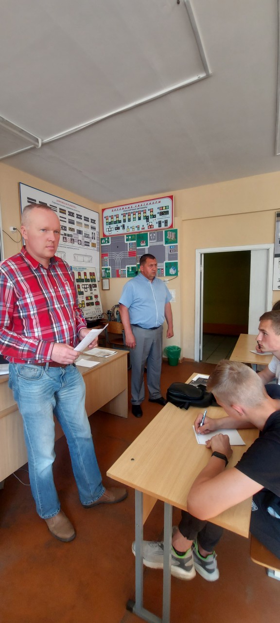 29 мая 2023 прошло собрание с допризывной молодежью, прибывших на обучение. Молодым людям были показаны классы в которых они будет проходить обучение. Перед собравшимися выступили председатель Могилевской объединенной организационной структуры ДОСААФ Коньшин Александр Иванович, заместитель председателя по учебно-производственной работе Харитонова Оксана Алексеевна, начальник гаража Леончиков Виктор Анатольевич и капитан Шайдов Александр Сергеевич, заместитель начальника отдела призыва.