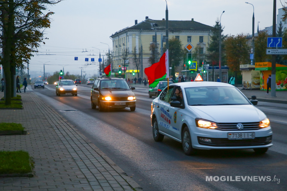 Уже стало традиционным участиев подобных акциях машин автопарка Могилевской объединенной организационной структуры ДОСААФ. Колонна автомобилистов с государственной символикой проехала от автостоянки возле ТЦ «Е-сити» по улицам города до ТЦ «Парк Сити».