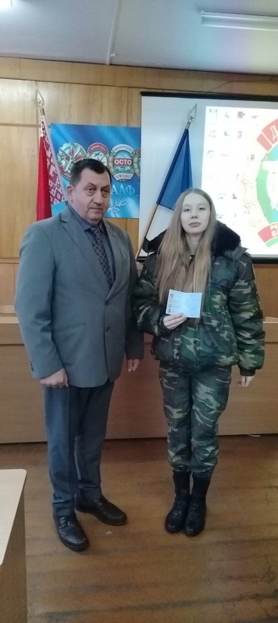 В конце встречи в торжественной обстановке были приняты в члены ДОСААФ новые участники военно-патриотического клуба, им были вручены членские билеты ДОСААФ.