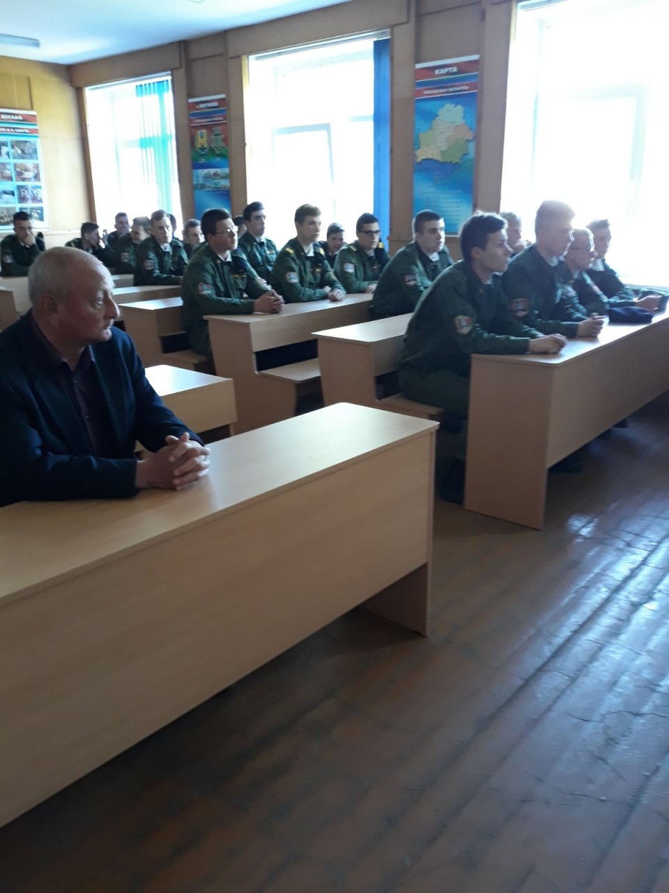 В актовом зале перед собравшимися выступил председатель Могилевский объединенной организационной структуры ДОСААФ Коньшин Александр Иванович. Он рассказал о целях и задачах оборонного общества. Были продемонстрированы фильм, рассказывающий об истории и современной деятельности легендарной организации и рекламные ролики.