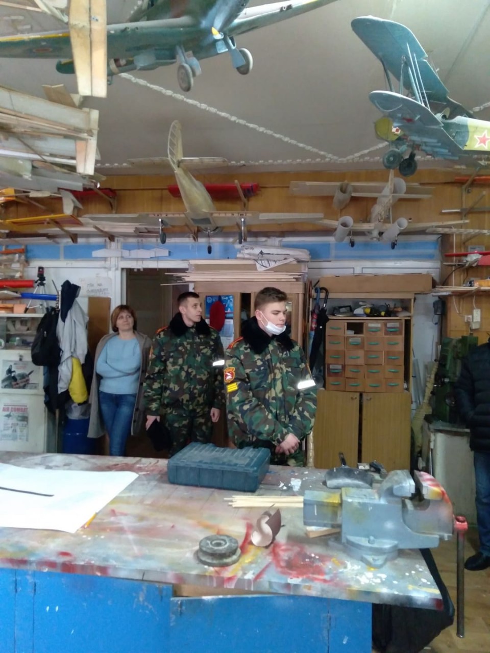 Гостям показали музей Могилевский объединенной организационной структуры ДОСААФ. Огромный интерес у кадетов вызвала секция по ракетомодельному и авиамодельному спорту.