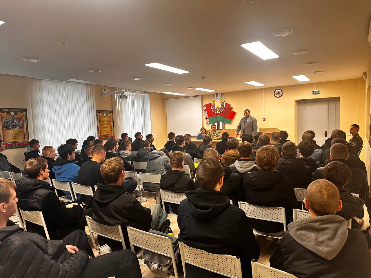 На базе Могилевского городского военкомата 13 ноября прошел инструктаж призывников, направляемых для обучения в МООС ДОСААФ по управлению механическими транспортными средствами, на котором присутствовали сотрудники военкомата, председатель МООС ДОСААФ Петрович П.С., председатель МООС ДОСААФ Коньшин А.И. и заместитель председателя по учебно-технической части Харитонова О.А.