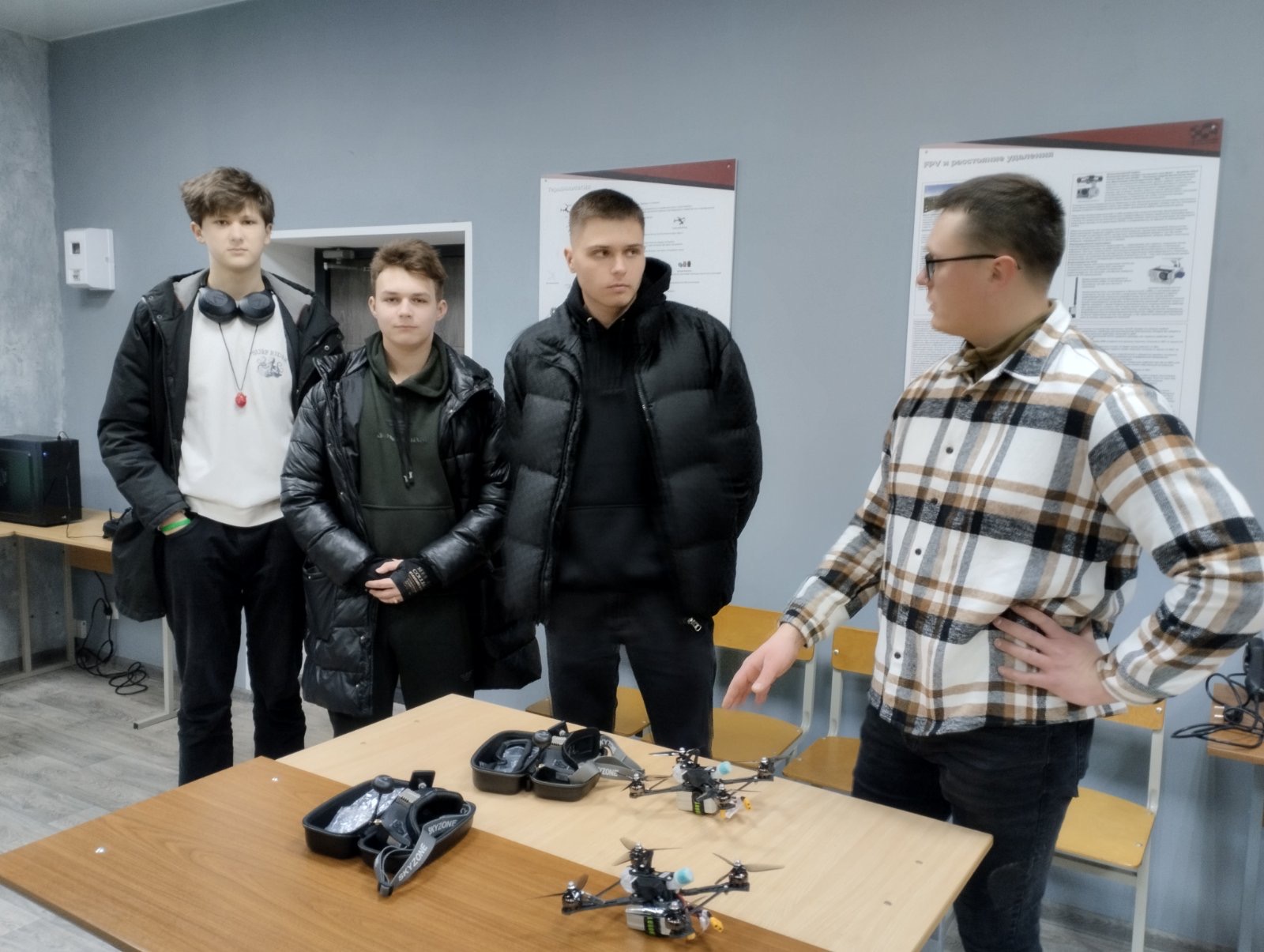Перед учащимися выступили председатель Могилевской объединенной организационной структуры ДОСААФКоньшин Александр Иванович и инструктор-методист секции БПЛА Пачков Евгений Андреевич. Александр Иванович рассказал ребятам исторический путь «Добровольного общества содействия армии, авиации и флоту Республики Беларусь», о тех задачах, которые решает Общество на современном этапе. Евгений Пачков подробно рассказал ребятам о работе секцииДрон-рейсинга, гдеобучают мастерству управления беспилотными летательными аппаратами.