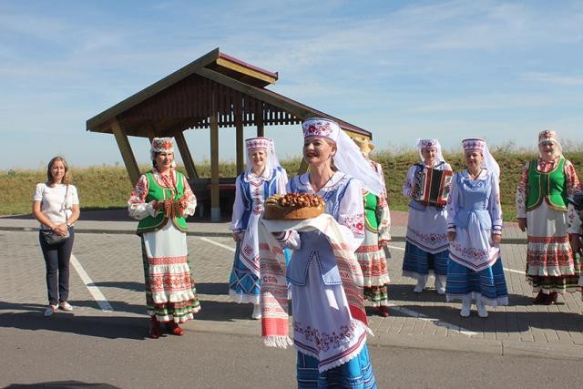 Хлебом-солью и белорусскими национальными песнями в исполнении группы «Бабруйскіх музыкаў» встретили участников автопробега на границе Гомельской и Могилевской области возле деревни Турки.