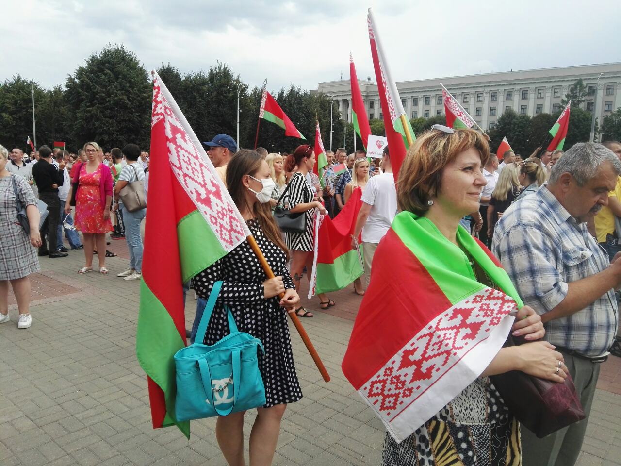 Активное участие в мероприятие приняли и работники Могилевской объединенной организационной структуры ДОСААФ. С красно-зелеными флагами они вышли на площадь, чтобы поддержать действующую власть выразить поддержку миру, безопасности и спокойствию в Беларуси.