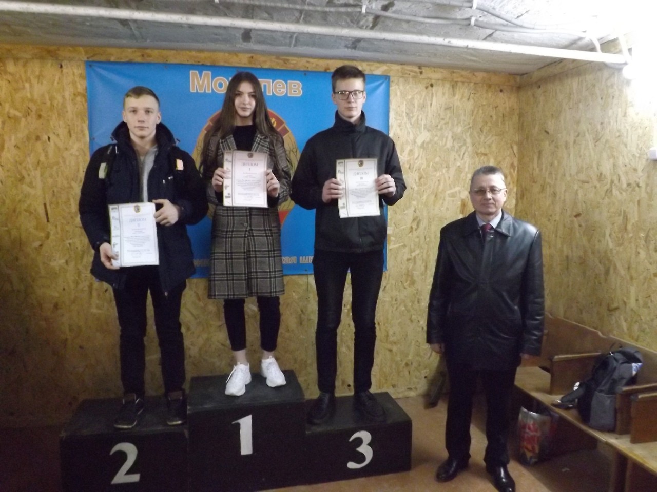 Среди юношей места распределились – первое место занял спортсмен из Костюковичской РОС ДОСААФ Степан Кучерявый, второе место занял Денис Ярошевич из Осиповичской РОС ДОСААФ и третье место завоевал Дмитрий Андрюшкин из Костюковичской РОС ДОСААФ.