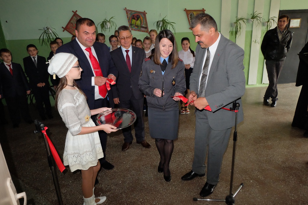 Вход в Центр безопасности дорожного движения был украшен воздушными шарами. Перед входом расположился отряд юных инспекторов движения. Право разрезать красную ленту предоставляется: директору школы Александру Николаевичу Аверкову и председателю Могилевской объединенной организационной структуры ДОСААФ Дмитрию Анатольевичу Телышеву. Далее в кабинет гордо прошагал 6 «А» класс для своего первого занятия. Учебный кабинет оснащен компьютерами, наглядными пособиями, плакатами. Для обучающихся созданы все условия для получения знаний и их совершенствования. Настоятель храма отец Сергий освятил Центр безопасности и выступил с напутственным и пожелал всех благ.