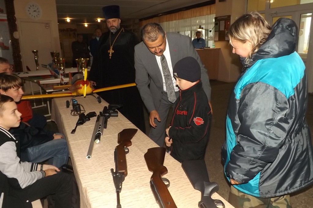 К мероприятию основательно подготовились. Перед школой организована выставка учебного автомобиля с Государственным флагом Республики Беларусь, флагами Могилевской объединенной организационной структуры ДОСААФ, мотоцикл спортивной секции по мотоспорту. В фойе школы расположилась выставка спортивной секции по авиаспорту и стрельбе пулевой, где гости и учащиеся могли ознакомиться с моделями самолетов и учебными пневматическими винтовками.
