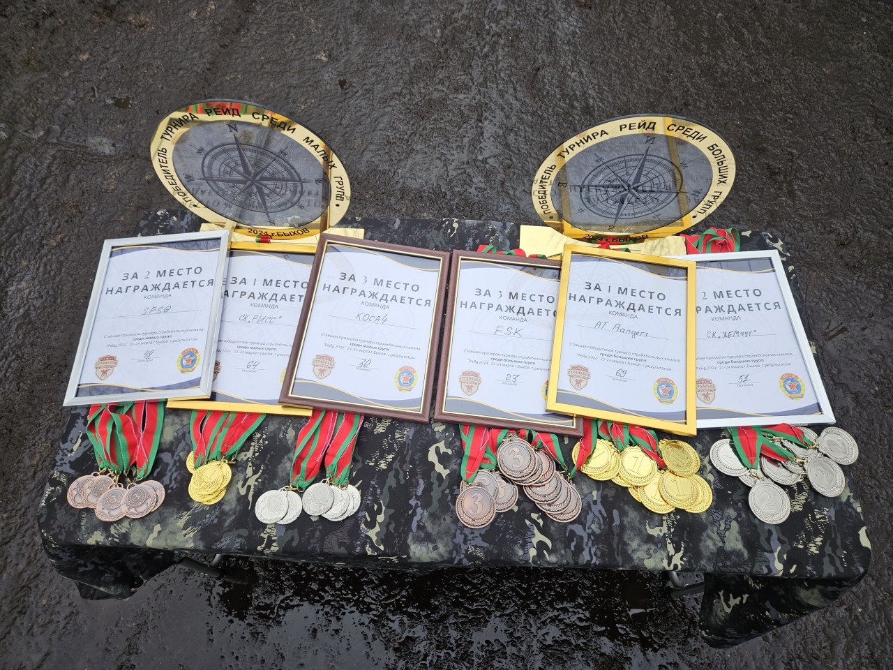 23-24 марта 2024 года на территории Новобоярского лесничества, Быховского района, в лесном массиве вблизи д. Выгода, проводился ночной турнир по командной военно-спортивной игре по страйкболу. Турнир был организован первичной организационной структурой ДОСААФ г. Могилева«Могилевскийстрайкбольныйклуб»,сприглашениемстрайкболистов из других регионов Республики Беларусь. Целью турнира: пропаганда спортивного образа жизни; повышение командой слаженности; отработка навыков ориентирования в лесу с использованием видимых ориентиров и компаса; работе с топографической картой местности; обустройство лесного лагеря для длительного пребывания в лесу; сформировать понимание работы команды в условиях противодействия со стороны других групп. В турнире принимали участие команды из различных регионов Республики Беларусь в двух категориях малые группы до 7 человек и большие группы до 15 человек. Турнирнаятаблицамалаягруппа:1 РИСС (Витебск) – 14 пройденных точек, 4 карточки жизней противника, 4 вынесенных крестовых предмета, 1 дневка противника=ИТОГ64балла2 SFSG (Могилев-Минск) – 12 пройденных точек, 4 карточки жизней противника, 4 вынесенных крестовых предмета= ИТОГбаллов3 КОСА4 (Сборная команд К4 Минск и ОСА Осиповичи) – 10пройденных точек, 2 вынесенных крестовых предмета = ИТОГ 30баллов4 ASOG (Минск) – 7 пройденных точек = ИТОГ 14 баллов (не эвакуировались)Турнирная таблица большая группа:1 AT RANGERS (Могилев) - 12 пройденных точек, 10 карточек жизней противника, 5 вынесенных крестовых предметов = ИТОГ баллов 2 СК ЖЕМЧУГ (Барановичи) - 8 пройденных точек, 5 вынесенных крестовых предметов, 1 дневка противника = ИТОГ 51 балл3 FSK (Минск) - 7 пройденных точек, 2 карточки жизней противника, 1 вынесенный крестовый предмет = ИТОГ 23 балла4 СК ТОРНАДО - 7 пройденных точек, 2 вынесенных крестовых предмета= ИТОГ 23 балла (не эвакуировались поэтому в зачет не пошли)